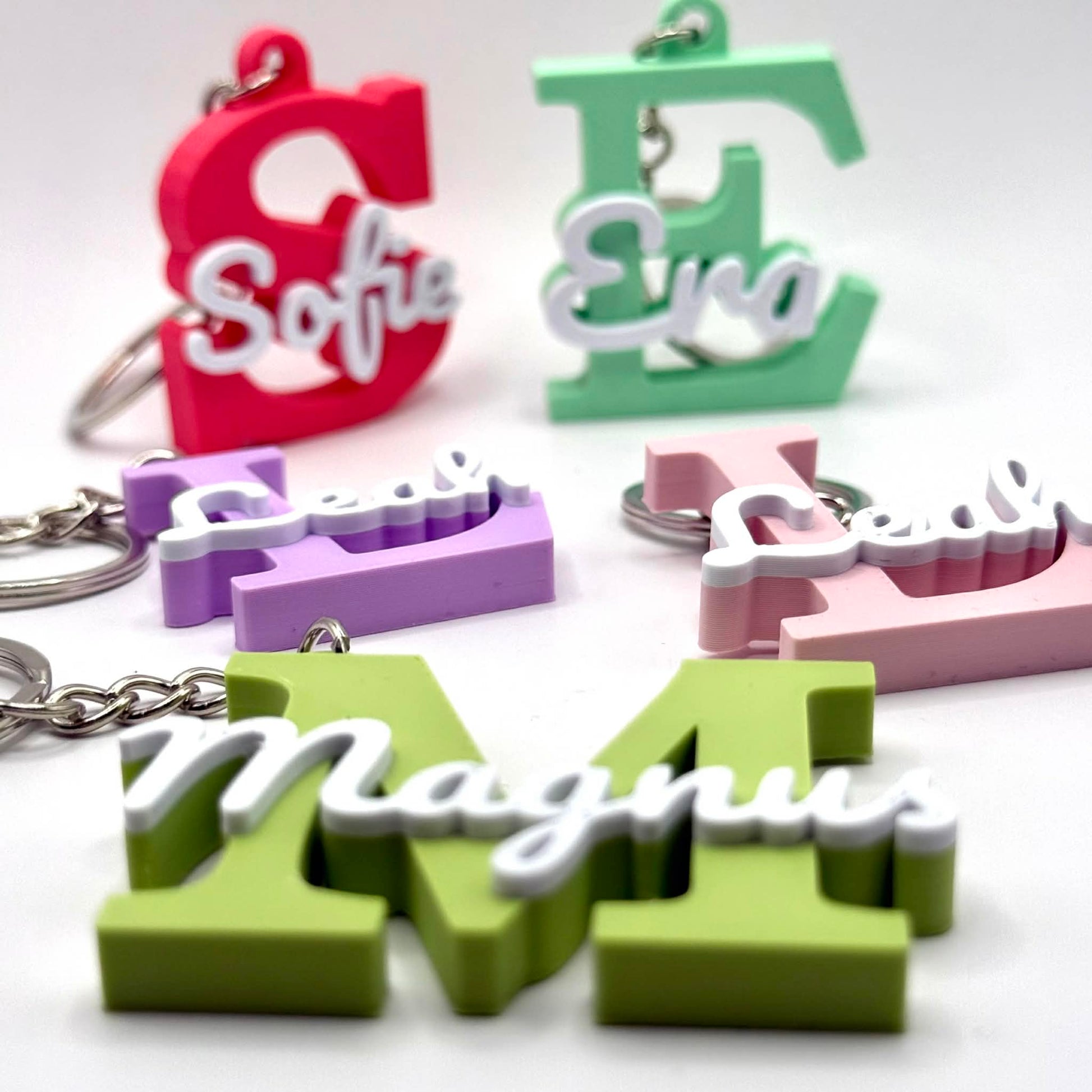 Gi nøklene dine et personlig preg! Denne unike nøkkelringen er formet som den første bokstaven i navnet, med navnet elegant plassert på toppen. For eksempel: skriver kunden inn navnet Sofie, vil nøkkelringen ha en stor S.